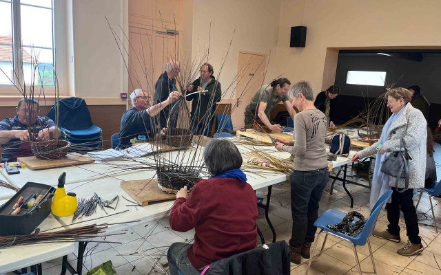 Au cours de l’hiver, de novembre à mars, quinze à vingt « apprentis » se retrouvent chaque mardi en soirée pour apprendre à tresser l’osier.